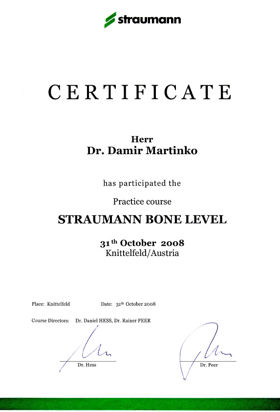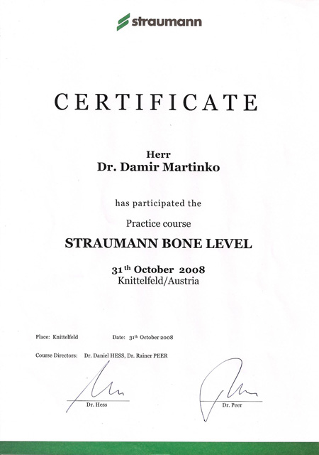 - 2008. „Straumann Bone Level Implants”, dr. Daniel Hess, dr. Rainer Peer (Knittelfeld, Austrija)