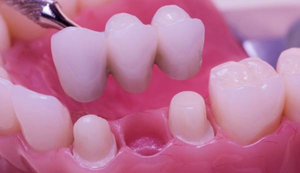 Il ponte dentale è un restauro che sostituisce uno o più denti mancanti. Un ponte tradizionale è fatto da un dente finto (filler dentale) e viene fissato a due corone vicine (moncone).