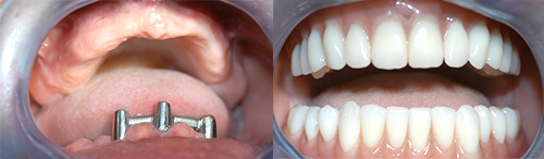 Overdenture e' un tipo di protesi semifissa che viene inserita su impianti dentali. Gli impianti dentali vengono inseriti nella mascella tramite attacchi speciali sui quali verra' montata successivamente la protesi overdenture. Questi attacchi possono avere la forma di una sfera o di una barra. La caratteristica interessante della soluzione overdenture risiede nella possibilita' di toglierla facilmente per la pulizia e reinserirla saldamente in posizione per tutte le nostre attivita' quotidiane, compresa quella di dormire.